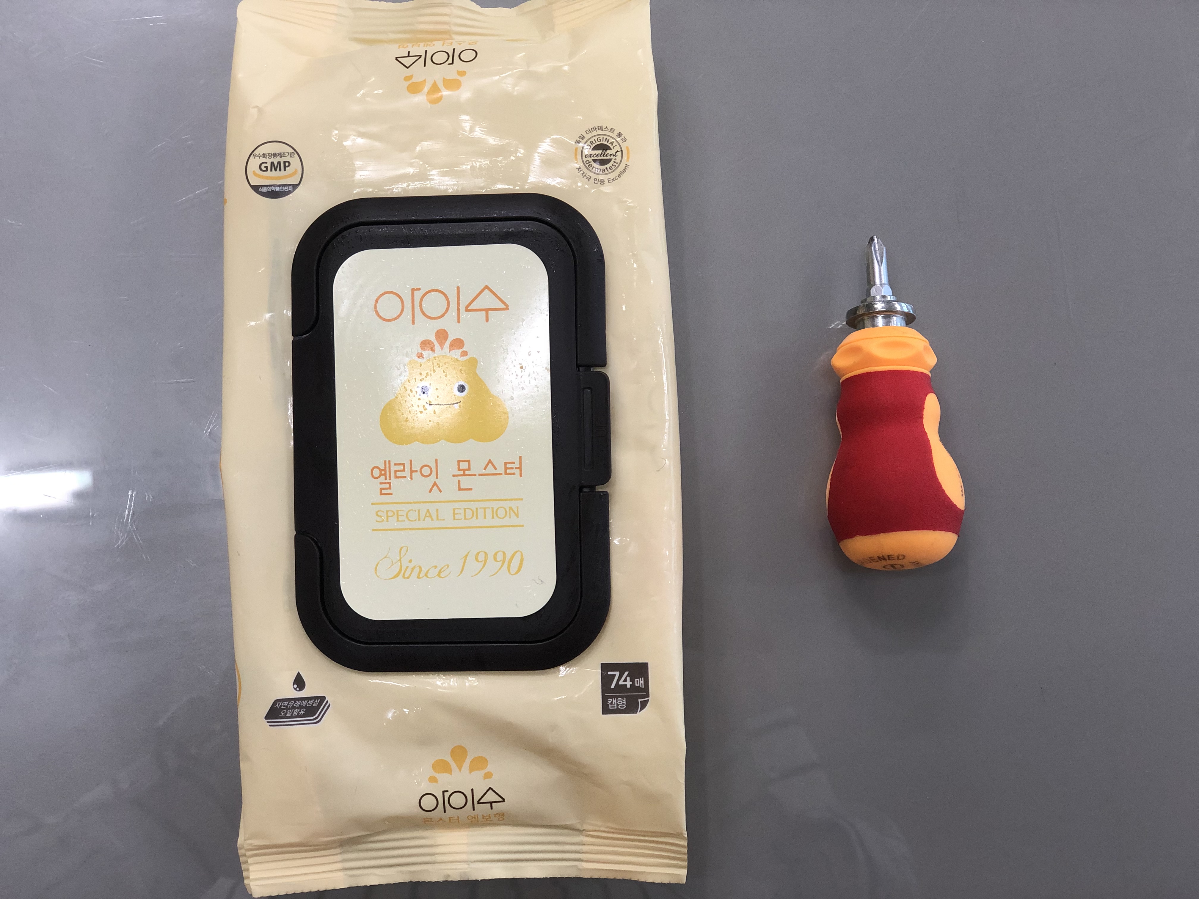 - 드라이버는 손잡이의 나사를 풀고, 조이는 데 사용될 것이고, 물티슈는 오랫 만에 손잡이 분해하는데 주변 청소도 할 겸 닦을 용도로 준비된 것이다.