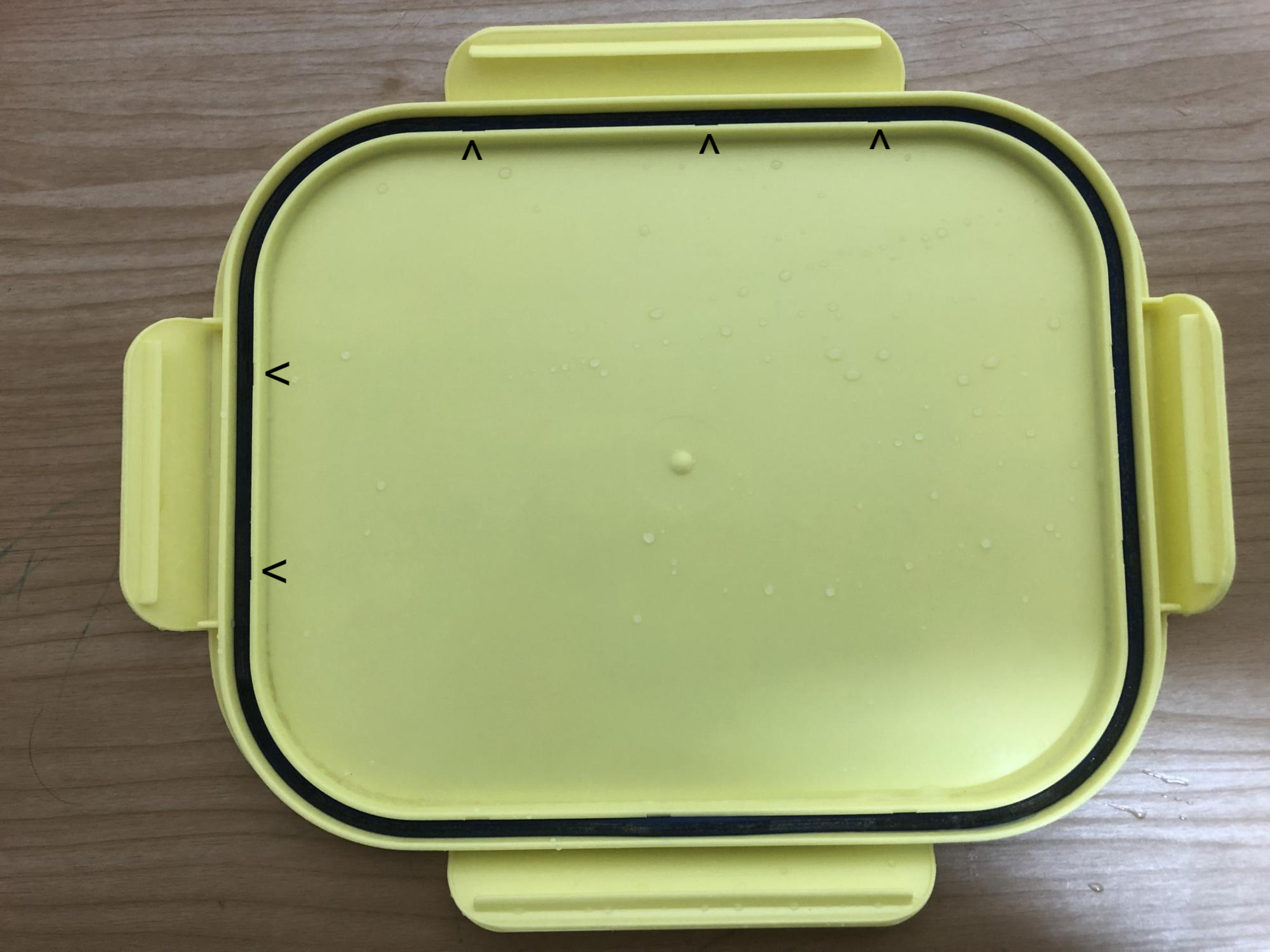 - 아래의 사진처럼 화살표 되어있는 곳이 고무패킹을 빼기 좋도록 홈을 만들어 놓은 곳이다. 고무패킹을 사용하는 다른 식판들도 대부분 이렇게 나왔을 것이며 큰 차이는 없다.